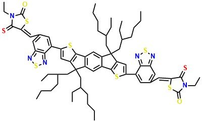 EH-IDTBR (5Z)-3-Ethyl-2-sulfanylidene-5- [[4-[9,9,18,18-tetrakis(2-ethylhexyl)-15-[7-[(Z)-(3-ethyl-4-oxo-2-sulfanylidene-1,3-thiazolidin-5-ylidene)methyl]-2,1,3-benzothiadiazol-4-yl]-5,14-dithiapentacyclo[10.6.0.03,10.04,8.013,17]octadeca-1(12),2,4(8),6,10,13(17),15-heptaen-6-yl]-2,1,3-benzothiadiazol-7-yl]methylidene]-1,3-thiazolidin-4-one