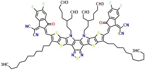 N3-4F 2,2′-(((12,13-Bis(3-ethylheptyl)-3,9-diundecyl-12,13-dihydro-[1,2,5]thiadiazolo[3,4-e]thieno[2”,3”:4′,5′]thieno[2′,3′:4,5]pyrrolo[3,2-g]thieno[2′,3′:4,5]thieno[3,2-b]indole-2,10-diyl)bis(methaneylylidene))bis(5,6-difluoro-3-oxo-2,3-dihydro-1H-indene-2,1-diylidene))dimalononitrile